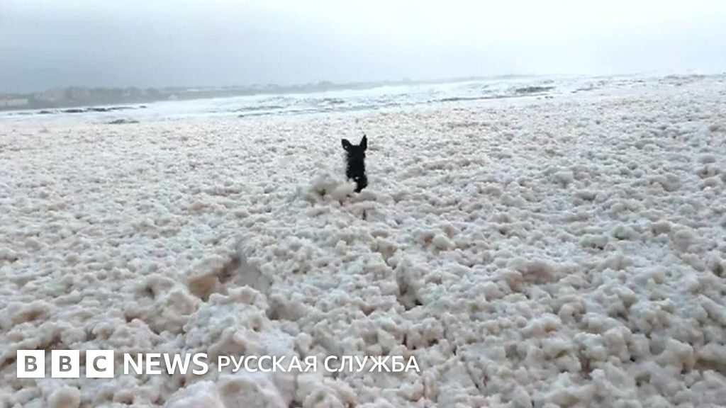 Пляж в Донегале оказался покрыт толстым слоем морской пены, к немалой радости домашних питомцев.