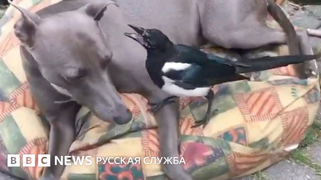 Собака по кличке Бу нашла птенца сороки и стала его лучшим другом.