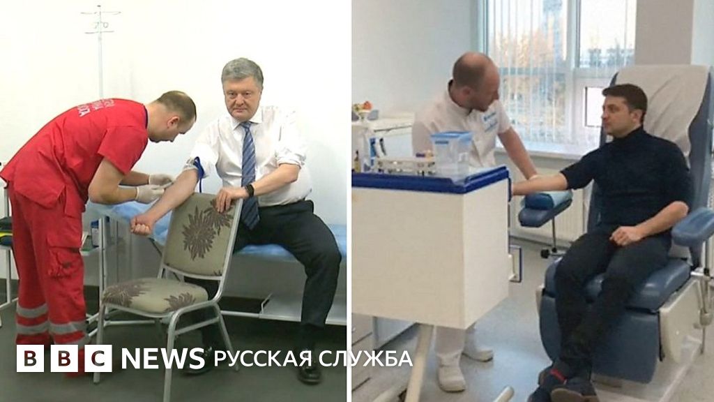 Порошенко и Зеленский сдали кровь в преддверии теледебатов. Видео