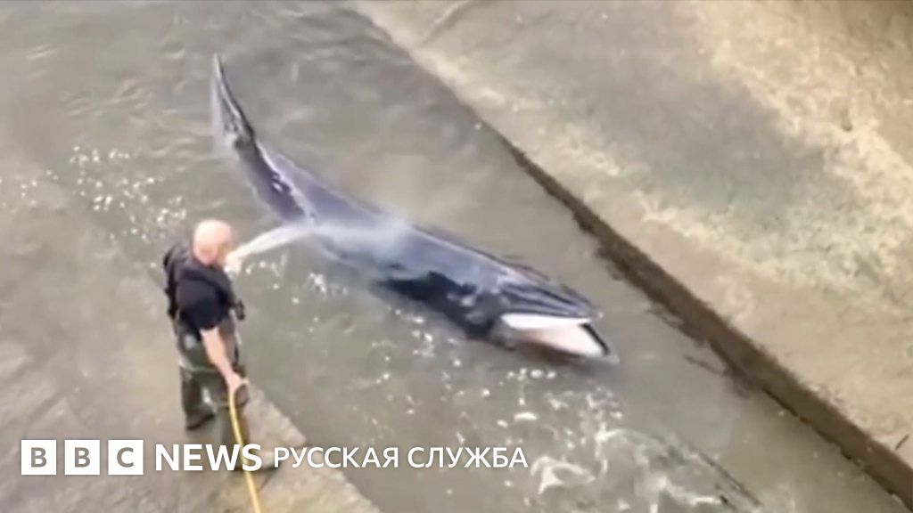 Кит-полосатик, обычно обитающий в Атлантическом и Тихом океанах, оказался в Темзе на юго-западе Лондона. Вокруг собралась толпа зевак, животное поливали водой из шланга, чтобы помочь.