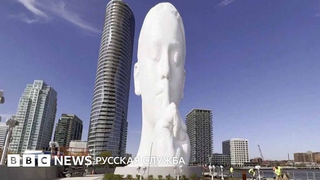 Гигантская скульптура женской головы с прижатым к губам указательным пальцем появилась на берегу реки Гудзон.
