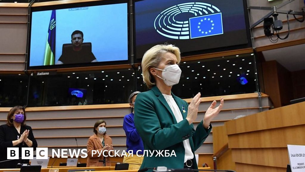 Владимир Зеленский обращался к членам Европарламента по видеосвязи из Киева. Политики встали и аплодировали ему.