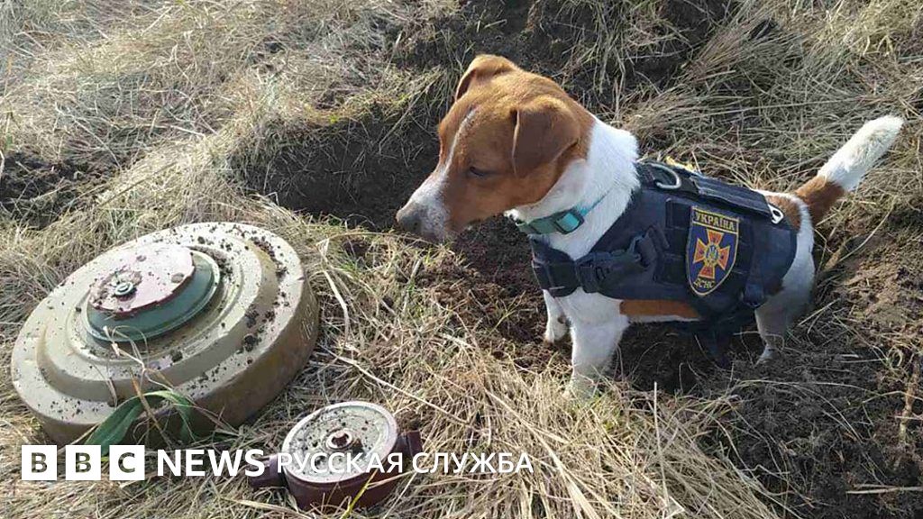 Пес Патрон служит в сапером в службе по чрезвычайным ситуациям Украины. Он помогает разминировать территории, с которых отступили российские войска.