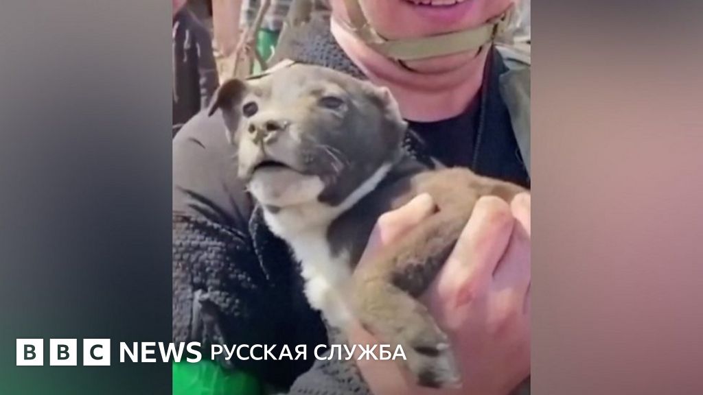 Подпись к видео, Спасатели вытащили щенка из-под завалов после обстрела