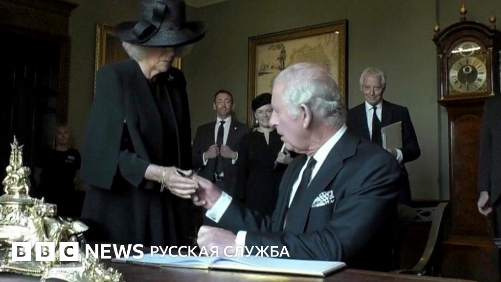 Король Карл III был раздосадован протекающей ручкой, когда подписывал книгу в официальной резиденции в Северной Ирландии замке Хиллсборо, который он посещал с Камиллой, королевой-консортом.