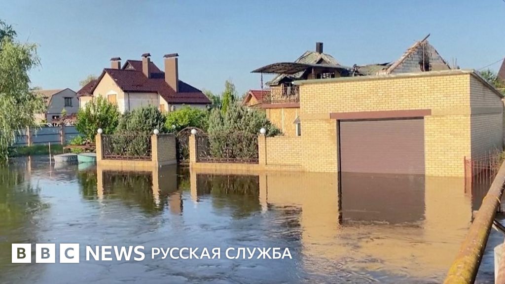 После разрушения плотины Каховской ГЭС вода в Днепре начала подниматься и затапливать окрестности. Би-би-си собрала видео из разных городов.