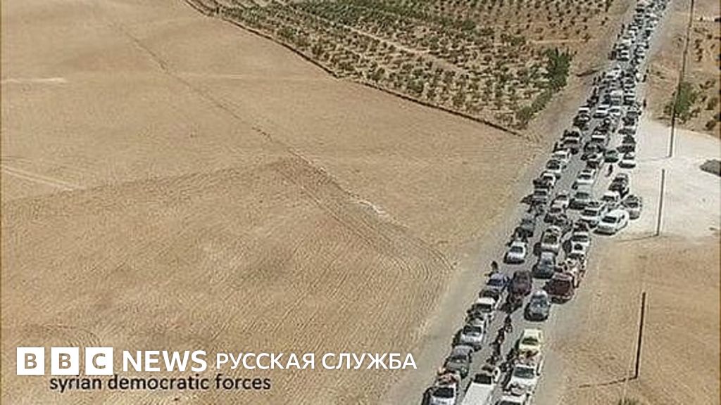 Демократические силы Сирии опубликовали аэрофотоснимки, на которых запечатлено, как боевики экстремистской группировки "Исламское государство" (запрещена в России и ряде других стран), используя гражданское население как живой щит, покидают город Манбидж.