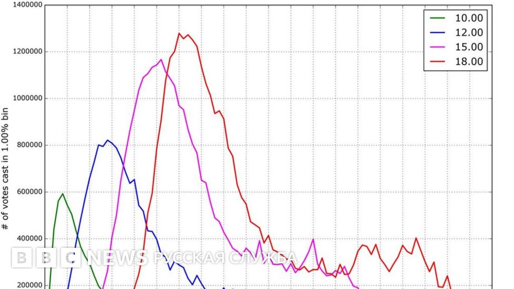 Из графика, построенного по информации со всей России, ученый делает вывод, что реальная явка избирателей по состоянию на 18:00 по Москве составляла около 32%. Центризбирком явку к тому же времени оценивал примерно в 39%.