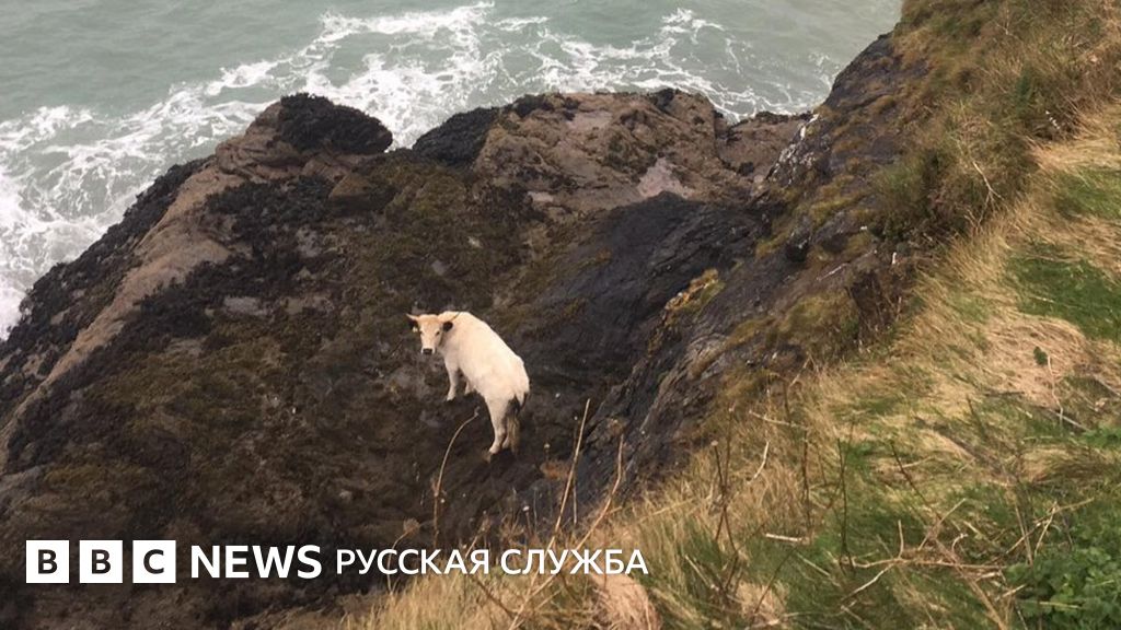 Британские спасатели провели многочасовую успешную операцию по вызволению из трудной ситуации беременной коровы, которая упала с 18-метрового утеса и уплыла на соседний остров.