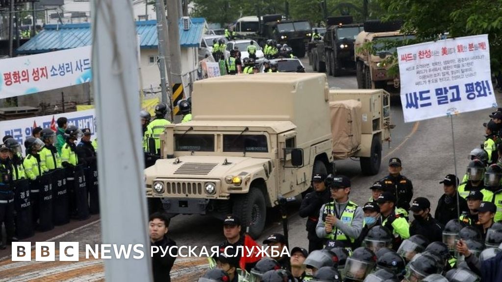 В провинции Сонджу, куда в среду перевезли оборудование комплекса, колонну американской военной техники встретили сотни демонстрантов, протестующих против размещения там системы ПРО.