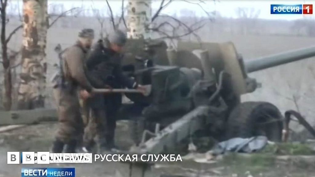 Он также говорит, что для обстрела использовали старую советскую пушку. Его слова сопровождаются видеозаписью, на которой видно, как несколько человек стреляют из пушки, а голос говорит за кадром: "Мы стреляем из пушки 43 года по русским оккупантам".