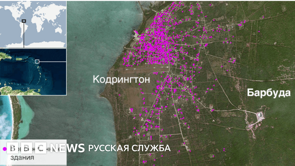 Большая часть населения острова - чуть более 1600 человек - проживает в городе Кодрингтон, где, как показывают снимки со спутника, наибольшее количество разрушений.