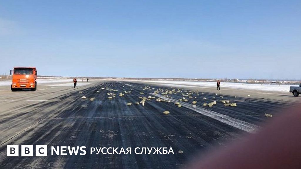 Аэропорт Якутска сообщает, что из транспортного самолета Ан-12 при вылете из города вывалился "особо ценный груз". Местные СМИ опубликовали фотографии слитков, рассыпанных по взлетной полосе.