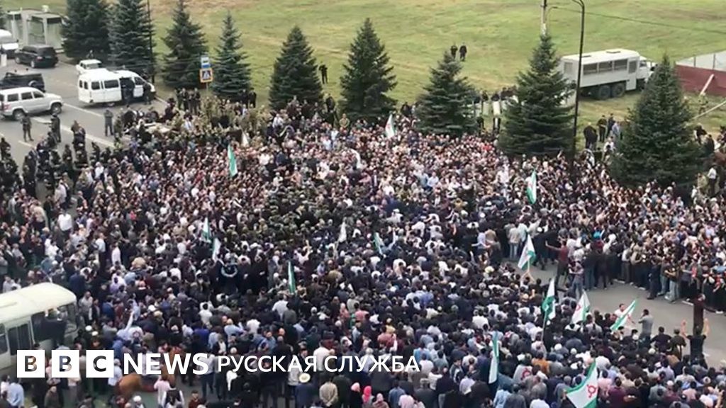 В Ингушетии проходит митинг против соглашения о границе с Чечней. На видео, снятом корреспондентами Русской службы Би-би-си, слышна стрельба.