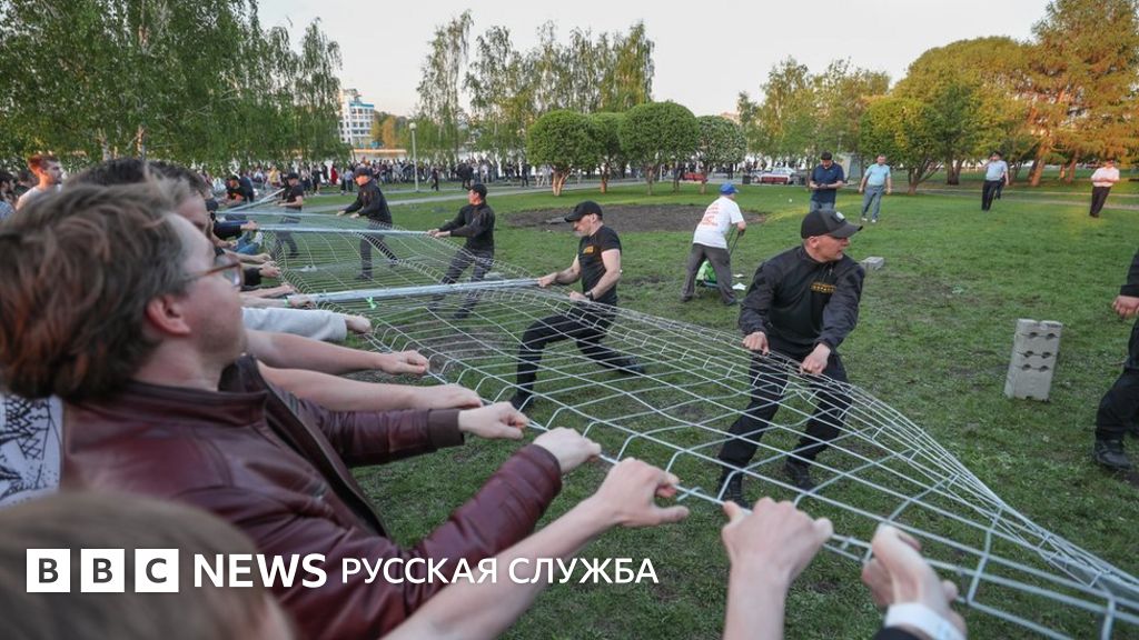 Вечером 13 мая в Екатеринбурге прошла стихийная акция в защиту сквера, на месте которого власти хотят построить храм. Протестующие повалили забор, которым огородили место стройки, но сотрудники ЧОПа и пришедшие им на подмогу молодые люди спортивного телосложения поставили его обратно.