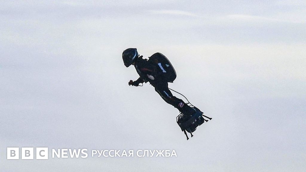 По размерам флайборд схож со скейтбордом, в движение его приводят несколько небольших реактивных двигателей, работающих на керосине, баллон с которым находится у пилота в рюкзаке.