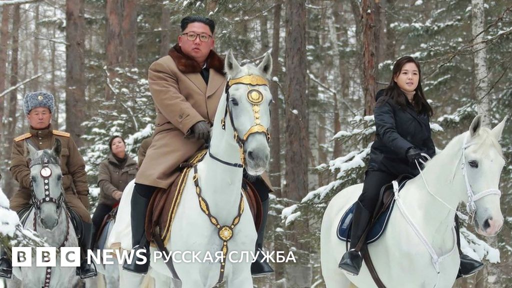 Государственное информационное агентство Северной Кореи ЦТАК опубликовало серию фотографий, на которых Ким Чен Ын в сопровождении жены и нескольких военачальников - все на белых лошадях - скачут по заснеженным склонам священной горы Пэктусан.