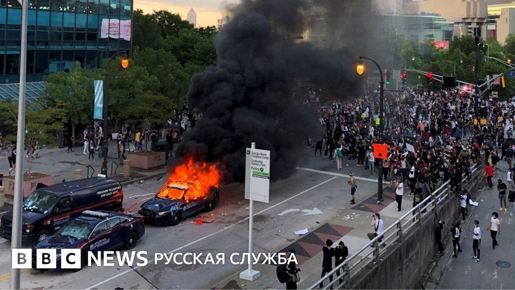 В Атланте протестующие громили здания и подожгли полицейских автомобиль недалеко от штаб-квартиры телекомпании Си-эн-эн.