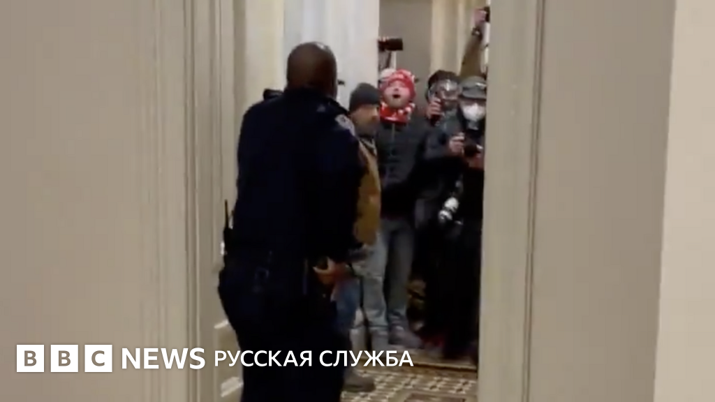 Гудман, как видно на распространенном видео в соцсетях, уводит толпу сторонников Трампа за собой прочь от зала заседаний Конгресса, где утверждали итоги выборов. В тот момент членов Конгресса еще не успели эвакуировать из зала.