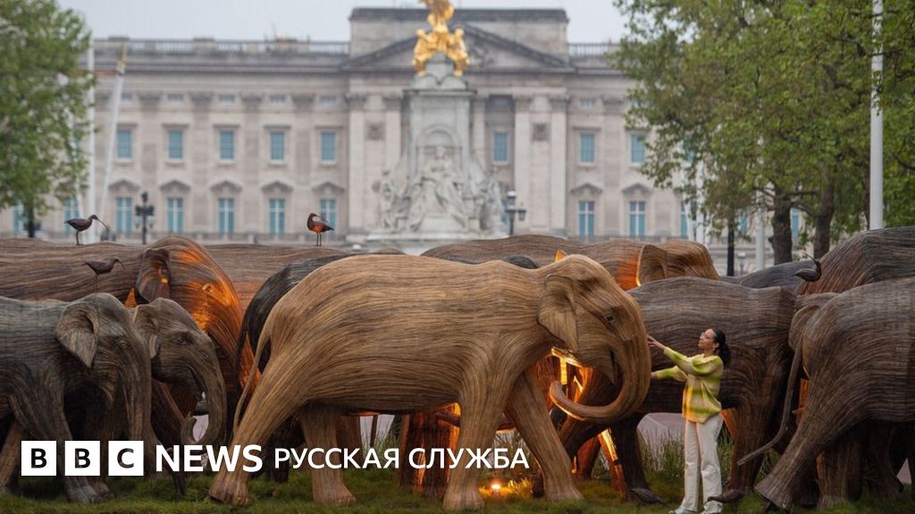 Слоны в Лондоне. Деревянное стадо пригнали к Букингемскому дворцу