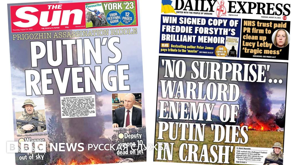 Новости о крушении самолета Евгения Пригожина в четверг - на первых страницах британских газет. Посмотрите, как это выглядит.