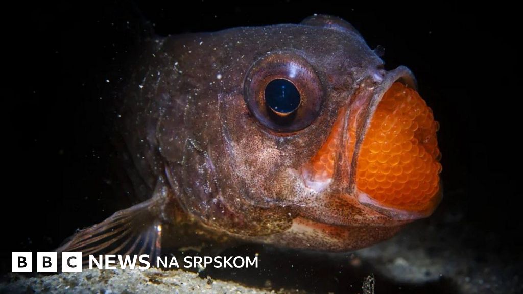 Goblgats (sitnija vrsta australijske kardinal ribe), „leži" na jajima, ali to čini ustima.