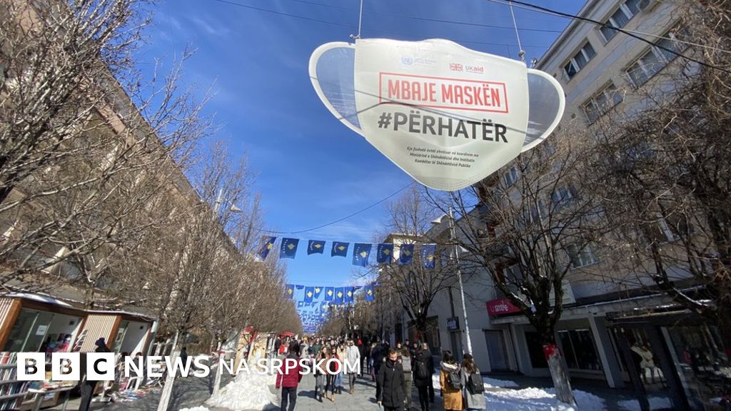 Potpis ispod fotografije, Na ulicama Prištine obavezno je nošenje maski