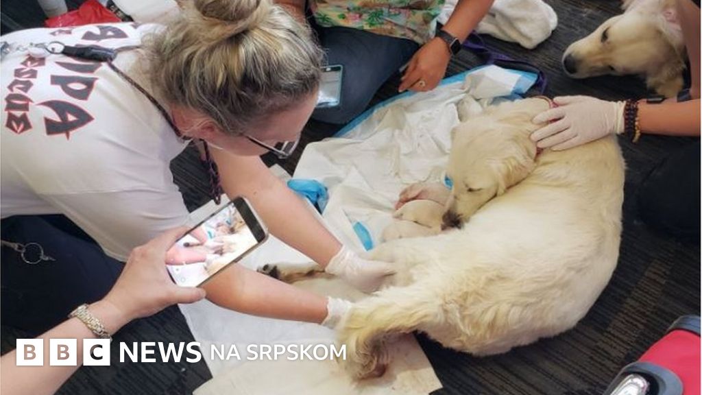 Američka službena kuja iznenada je oštenila osmoro štenadi trenutak pre ukrcavanja na međunarodnom aerdromu u Floridi.