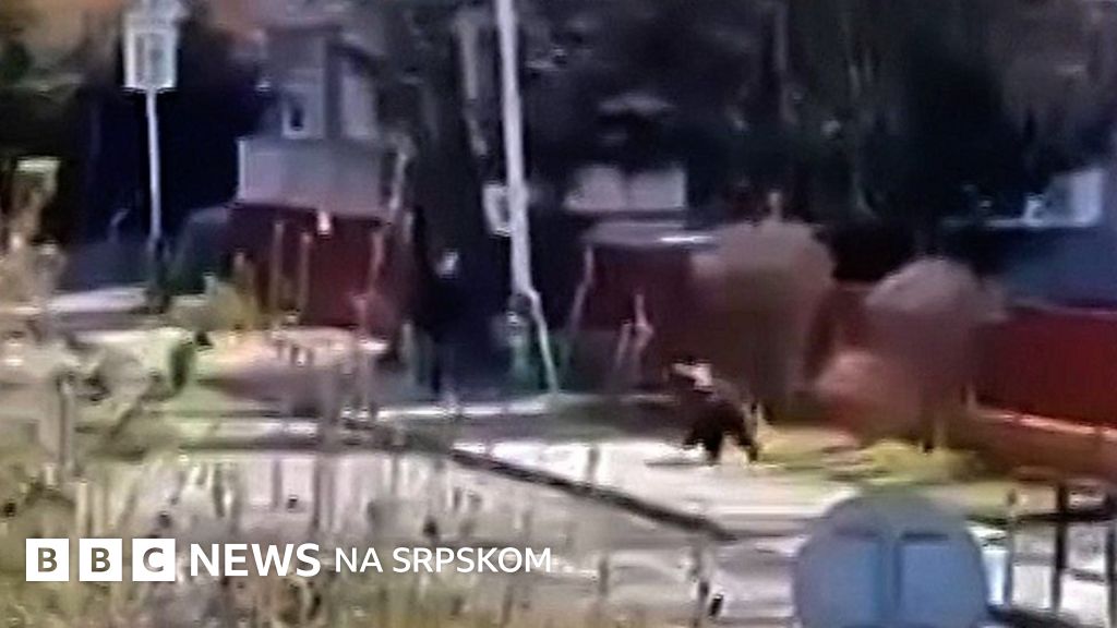 Na snimcima se vidi kako medved trči ulicom pre nego što se zaleteo na muškarca.
