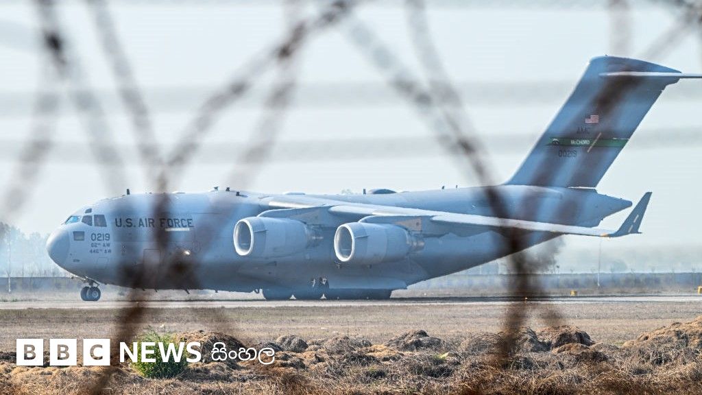 ට්රම්ප් ඇමෙරිකාවේ හමුදා ගුවන් යානා භාවිත කරමින් අනවසරයෙන් රැඳී සිටින පුද්ගලයන් ඔවුන්ගේ මව් රටවලට ආපසු යවමින් සිටී.