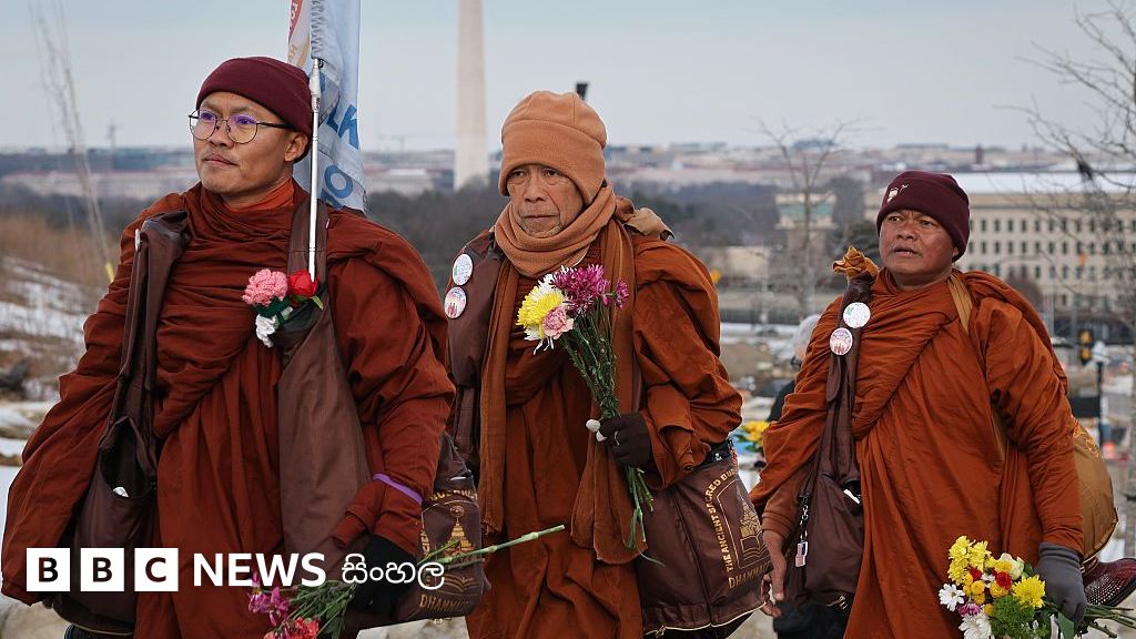 ඇතැම් විට පාවහන් නොමැතිව මෙන් ම හිම මතින් ටෙක්සාස් සිට වොෂින්ටන් ඩීසී දක්වා සැතපුම් 2,000ක දුරක් පා පාගමනින් වැඩි බෞද්ධ භික්ෂූන් වහන්සේලාගේ "සාමයේ පා ගමන" අඟහරුවාදා (ඊයේ) අවසන් විය.