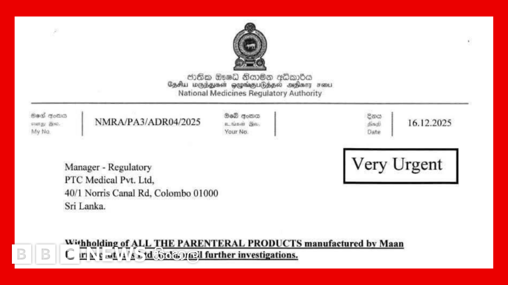 මේ අතර, ජාතික ඖෂධ නියාමන අධිකාරිය විසින් දෙසැම්බර් 12 වන දින "ඉතා හදිසි" ලේබලය යටතේ නිකුත් කරන ලද ලිපියක, "Maan Pharmaceutical Ltd, India" යන නිෂ්පාදකයාගේ, "Ondansetron Injection USP 8 mg/4 mL (Ondanman 8)" යන ඖෂධයේ "OD24021E, OD25009E, OD25024E, OD25023E" යන කාණ්ඩ රෝහල්වල සහ පුද්ගලික අංශයේ ලබා දීම අතිහිටුවන ලෙස දන්වා තිබේ.