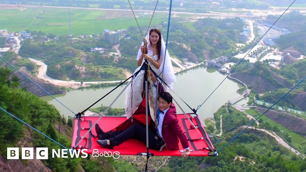 තම විශේෂ දිනයේ දී යමෙකුට කරන්නට නොසිතෙන ආකාරයෙන් වීදුරු පාලමක් යට ඉහල අවකාශයේ එල්ලෙමින් චීන යුවළක් විවාහ මංගල උත්සවයක් පැවැත්වූහ.