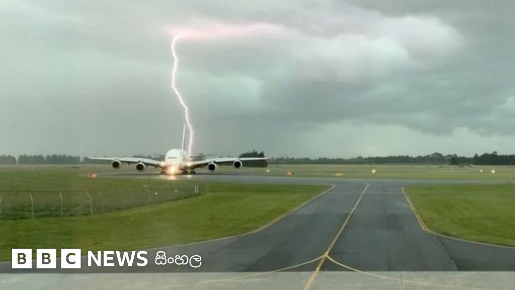 නවසීලන්තය: එමිරේට්ස් ගුවන් යානයක් අසල අකුණු සැරයක් පුපුරා යයි