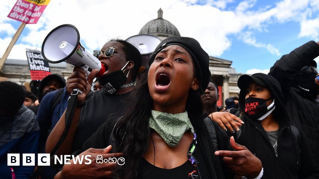 'මිනිඅපොලිස්' ඇමෙරිකානු නගරයේදී පසුගිය මාසයේ ජෝර්ජ් ෆ්ලොයිඩ් මරණය සිදුවීමෙන් අනතුරුව ''කළු ජාතික ජීවිතයටත් වටිනාකමක් දෙන්න'' යන තේරුම ඇතුළත් 'Black Lives Matter ' ව්යාපාරයට සහයෝගය දෙමින් එක්සත් රාජධානියේ දියත් කෙරුණ මහජන පෙළපාලිවලට දහස් ගණනින් ජනතාව එක්ව සිටියහ.