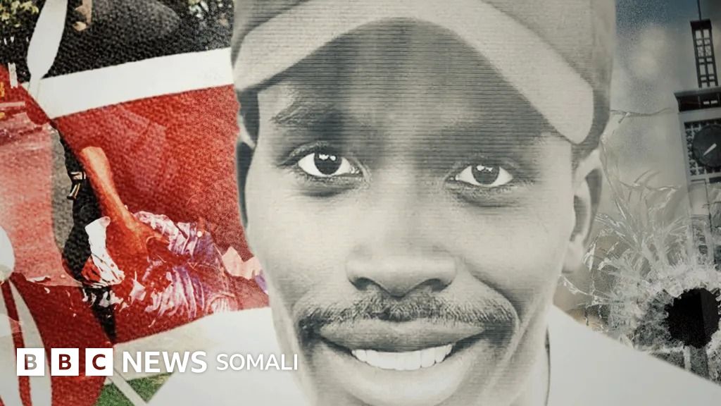 BBC Africa Eye ayaa falanqeysay in ka badan 150 sawir oo la qaaday daqiiqado ka hor iyo ka dib markii Shieni la toogtay. Waxaan awoodnay inaan aqoonsanno askariga ka toogtay dhabarka dambe ee madaxiisa meel 25m u jirta - mar kale, ma garanayno magaciisa.