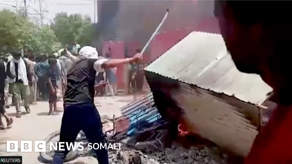 Muuqaallo la soo galiyay baraha bulshada ayaa muujinaya dad mudaaharaadaya oo burburinaya dhismayaal masiixiyiin ah halka booliisku ay u muuqdaan kuwo daawanaya.