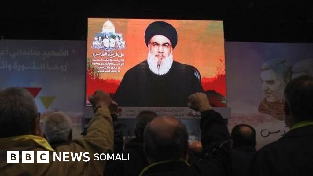 Muuqaal si weyn loogu wareejiyey Baraha Bulshada ayaa muujinaya khudbad uu jeediyey bishii Ogoosto ee sanadkii tagay hogaaamiyaha Xisbullah Xasan Nasrallah kaas oo sheegay