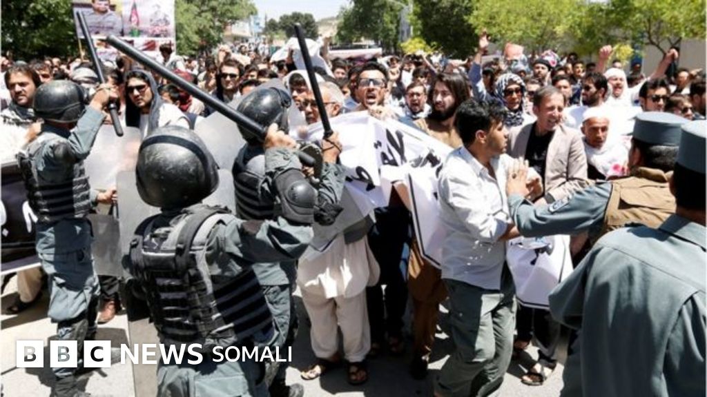 Ku dhawaad sadex boqol oo qof ayaa mar kale dibadbaxaya, kuwaasi oo Mr Ghani ka dalbanaya in uu iscaliso, waxay ka caraysan yihiin xasilooni la'aanta dalka ka jirta sadex maalin ka dib markii baabuur waxyaabaha qarax baabuur lagu dilay sagaashan qof.