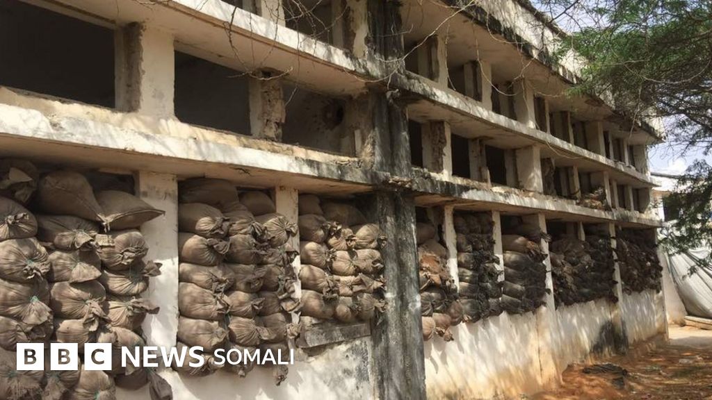 Weriyaha BBCda Muqdisho Ibraahim Maxamed Aadan oo maanta booqday dhismaha ayaa sheegay inuu arkay dhismayaal burbursan oo daaqadahooda la galiyay jawaano ciid ah si dhufeys looga dhigto, dhul keyna oo aad moodo inaan sanado badan la marin iyo difaacyo qoryo ku rakibanyihiin