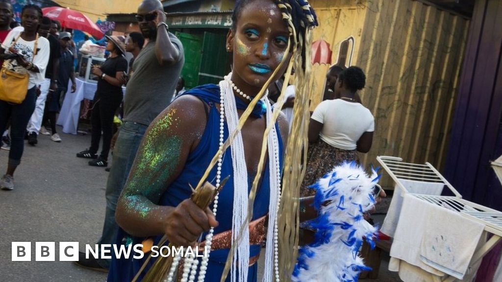 Qoraalka sawirka, Waa Sawir la qaaday 19 August, 2017 oo muujinaya haweeney qabta dhar midabbo leh intii laguguda jiray dabbaaldegga sannadlaha ah ee Chale Wote Street Art Festival oo ka dhacay James town, Accra.