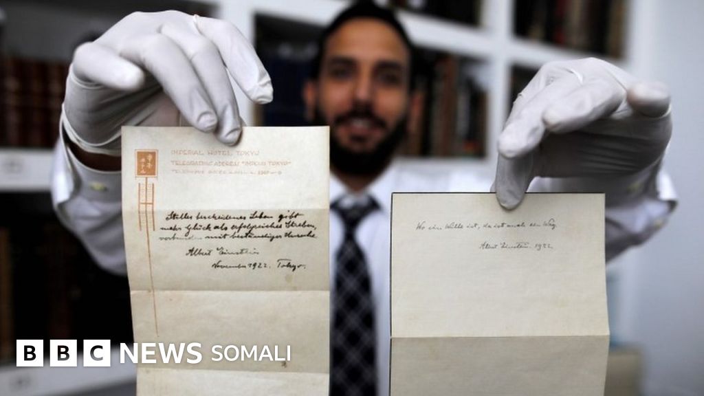 Labo qoraal oo Albert Einstein uu ka qoray aragtidiisa farxad ku noolaanshaha oo lagu soo bandhigay guri wax lagu xaraasho oo Qudus ku yaala ayaa lagu iibsaday 1.56 milyan oo doolar.
