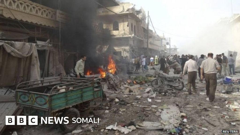Diyaaradaha duqeymaha ayaa garaacay suuq weyn, waxaana muuqaal baraha bulshada lasoo dhigay muujinayay burbur ballaaran.