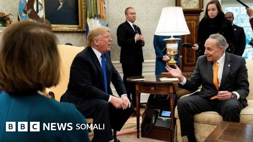 Donald Trump wuxuu furay shirkiisa ay saxaafadda goob joogga ka ahaayeen ee uu la yeeshay hoggaamiyeyaasha Dimuqraaddiga ee kala ah Nancy Pelosi iyo Chuck Schumer, iyadoo markii hore ay xaaladdu fiicneyd, shirkuna uu ku billowday wada hadal ay sameynayeen madaxda labada xisbi ee ugu waaweyn.