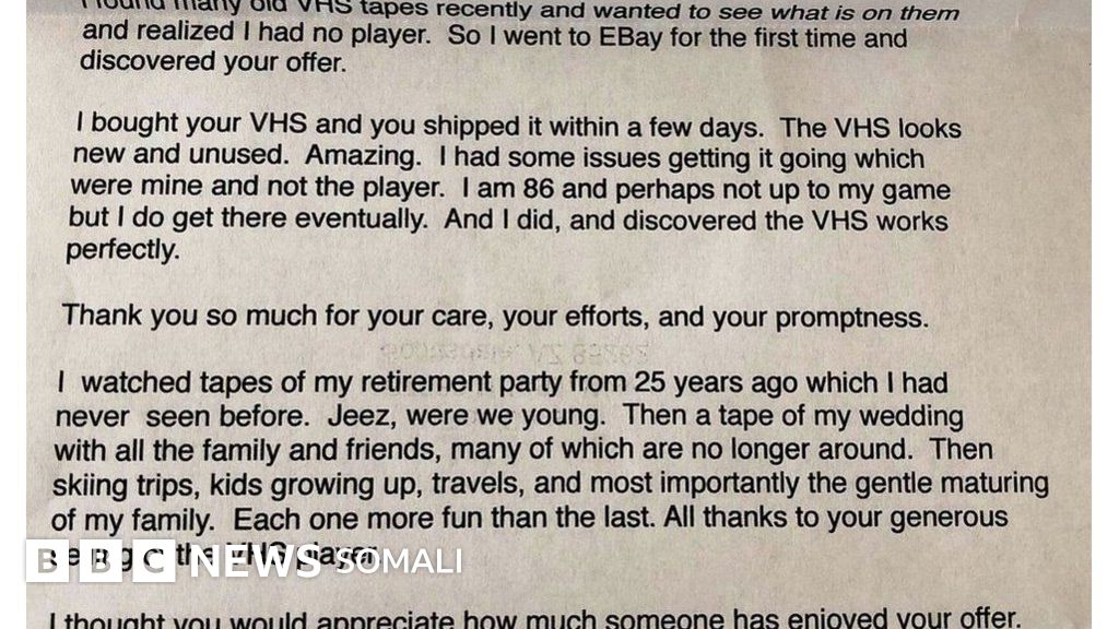 "Waxaan dhowaan helay cajalado badan oo VHS ah waxaana doonayay inaan arko waxa ku duuban waxaanse ogaaday inaanan haysan mashiinta lagu daawado. Sidaas darteed waxaan booqday EBay markii ugu horreysay waxaana ku arkay waxaad haysaan".