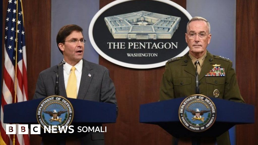 Mr Esper ayaa go'aankan ku dhawaaqay Jimcihii asagoo garab taagnaa madaxa saraakiisha ciiidamada Gen Joseph Dunford Jr.