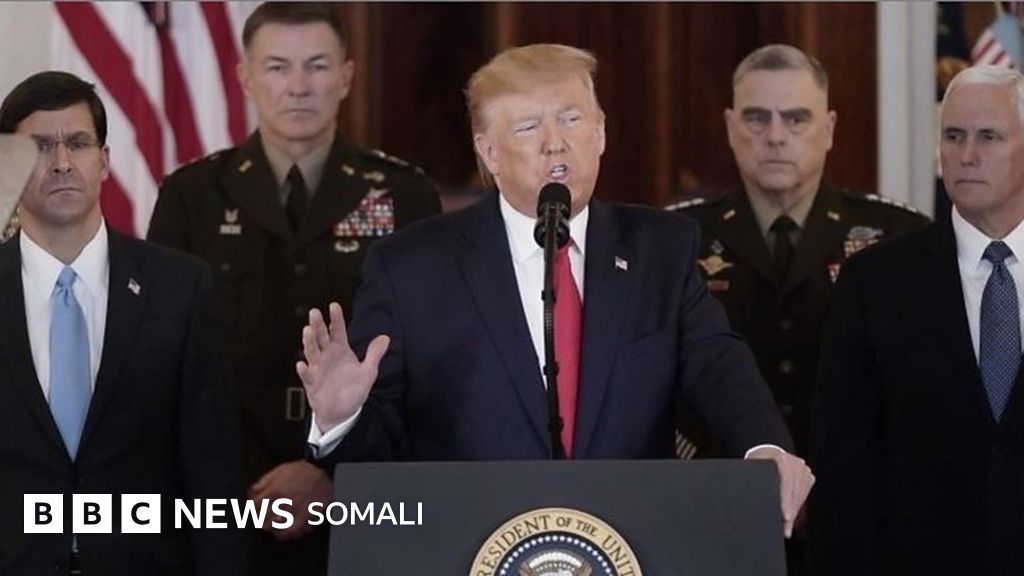 Wuxuu hadalkiisa diiradda ku saaray sababta loo dilay Soleimani - oo ahaa "ninka ugu sarreeyay argagixisada adduunka", waa sida uu Trump hadalka u dhigaye - iyo waliba in dilkiisa uu ahaa mid mar hore loo baahnaa.