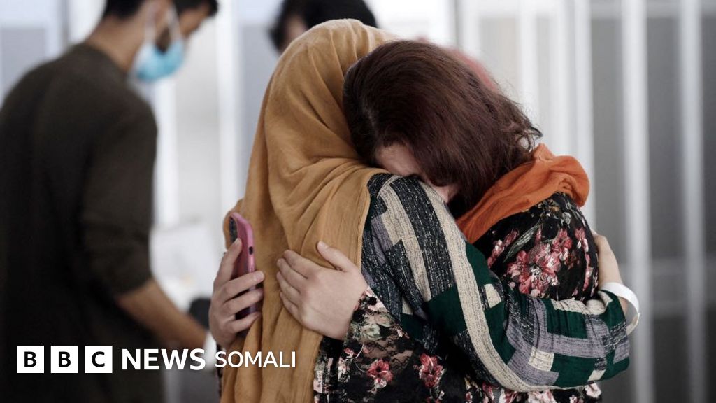 Sawirro laga soo qaaday Garoonka Dulles ee Washington ayaa muujinaya dadka Afghanistan oo imaanaya dalkaas.