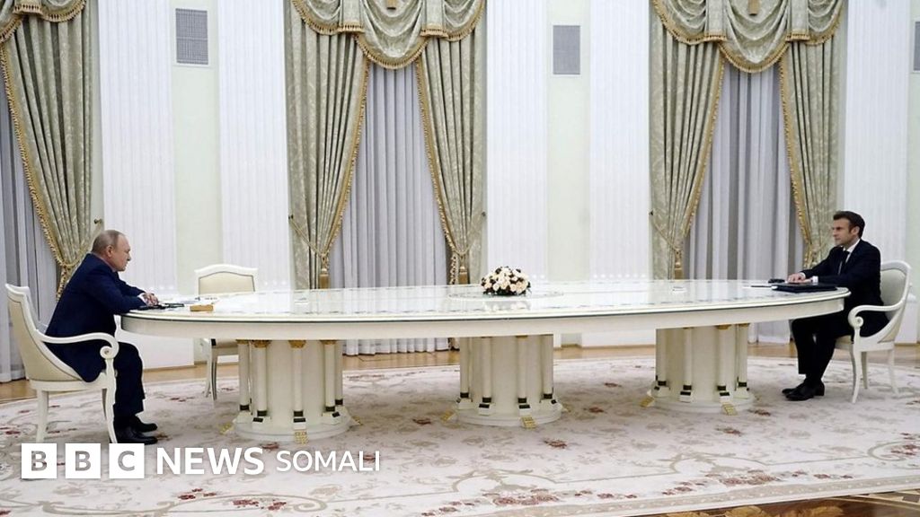 Sawir laga qaaday Madaxweynaha Ruushka Viladmir Putin iyo dhiggiisa Faransiiska Emanuel Macron oo kursi dheer labada cirif ka fadhiya ayaa hadal heyn aad u weyn ka dhex abuuray baraha bulshada. Labada madaxweyne ayaa Isniintii ku kulmay magaalada Moscow si ay uga wada hadlaan xiisadda Ukraine.