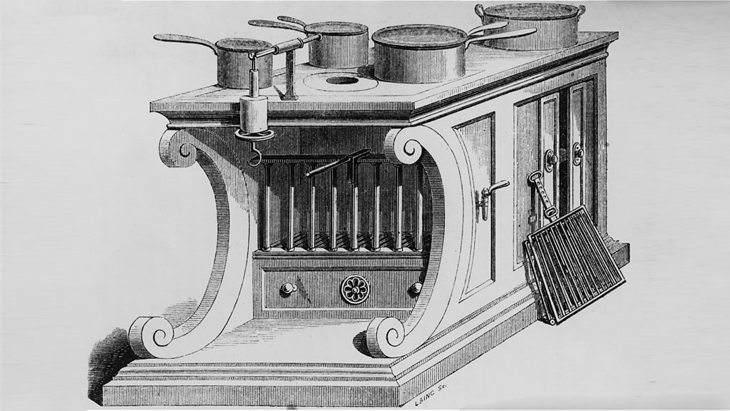Jonathan Freedland presents the series that looks for the past behind the present. He examines the parallels between today's celebrity chefs with social agendas and the 19th century chef Alexis Soyer, who became a household name and captured the British public imagination with his revolutionary approach to cooking and eating. Image: An engraving by Laing of Soyer's Modern Housewife's Kitchen Apparatus, circa 1850. The invention of French chef Alexis Soyer, it boasts an open roasting fire, a hot water boiler, a baking oven, a broiling stone and a hot plate.